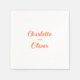 The Modern Coral Orange Script Wedding Napkin features the bride’s and groom’s names displayed in elegant coral orange script lettering. The design is clean and minimalist, creating a stylish table accent for modern weddings.