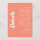 The Modern Coral Pink Wedding Details Enclosure Card features a clean and minimalist design with a soft coral pink background. The layout is simple and well organized, making it easy for guests to read important wedding information.