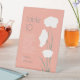 Guide your guests to the right table at your wedding, dinner party, or other special occasion with these high quality table tents! These modern 6" x 8" wedding table tent and guest names cards feature a minimalist flower design on a coral pink background with the table header and number in large letters modern letters.
