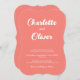 The couple’s names are highlighted in flowing script, creating a romantic focal point. Supporting details are arranged with clear spacing for easy reading. The warm coral pink color brings a welcoming and joyful feel, making this invitation ideal for spring and summer weddings.