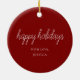 Modern Couple Photo Anniversary Script Red Holiday Ceramic Ornament.