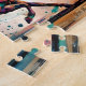 This modern abstract design features a cowboy riding his horse in a swirl of colours.