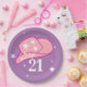 Modern Cowgirl Western Hat Pink Girl 21st Birthday Paper Plate