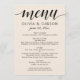 Modern Cream and Black Script Wedding Monogram Menu