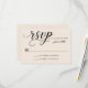 Modern and chic neutral creamy warm white and black wedding RSVP cards feature a stylish black typographic design with bold calligraphy script accents and elegant custom text that can be personalised with your response due date.