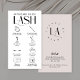 Modern eyelash extensions care cards for your lash salon or lash bar. This lash care card features care icons for each step, trendy fonts and minimal cream and white colour scheme. Add your logo and business details on the back to make stylish lashes after care business cards for your brand.