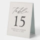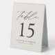 Trendy, minimalist wedding table number tent signs featuring black modern lettering with "Table" in modern calligraphy script. The design features a cream background or a colour of your choice. The design repeats on the back. To order the table number tent signs: personalise with your names, wedding date, and table number. Add each number to your cart individually and check out when you're finished.