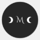 Modern Crescent Moons Black and White Monogram Classic Round Sticker