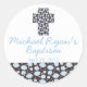 Stylish Blue & Brown flowers cross Holy Baptism Round Sticker can be used for an baptism christening envelope seal or a christening baptism favour tag seal.