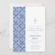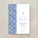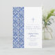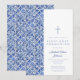 Modern Cross Blue Tiles Boy First Communion Invitation