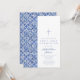 Modern Cross Blue Tiles Boy First Communion Invitation.
