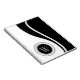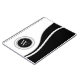 An elegant custom notebook for home, school, or office, this classic design features a black and white curved pattern trimmed in silver. The white background colour may be customised to other colour choices. Personalise with your monogram using the simple template.