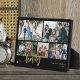 Modern simple elegant family handwritten calligraphy script with five custom photos black gold keepsake photo plaque template. ++++++++++++ Please note that the background color is changeable. You can replace the black with any other color after selecting CUSTOMIZE option.