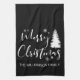 Modern Custom Black White Tree Merry Christmas Tea Towel