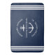 Nautical boating bath mat in navy blue reading "welcome aboard" as well as your custom boat name and location.