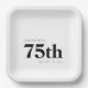 Modern Custom Bold Black Text 75th Name Date Paper Plate