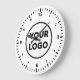 Replace the sample company logo with your own in the sidebar to create a modern wall clock for your business with a white background. Your logo can be in color or black and white. Bold black numbers with minute marks around the edge make it easy to tell the time. Click to customize further if you need to adjust the size of your logo with the scale buttons.