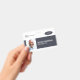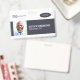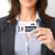 A modern and simple badge that does not distract from the important details. Easy to read from afar. Add a custom logo and company details. Add the employee's name, photo, and professional title. The bar of colour can be modified to match the company's official colours. At the back, add more information such as return address and the employee's ID number.