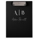 Modern Custom Monogram Initials Name Black Clipboard
