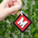 Modern custom name initial monogram metal keychain. Personalise with custom text. Red black and white colours can be customised. Square shape. Bulk gift ideas.