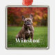 Modern Custom Pet Name Photo Holiday Metal Ornament