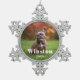 Modern Custom Pet Name Year Photo Holiday Snowflake Pewter Christmas Ornament