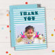 Modern birthday thank you postcard. Personalised thank you card for kids. Photo birthday thank you card - personalise it with your photo and your name. Modern white and blue stripes. It`s perfect for kids - great for thanking your friends and family for their birthday gifts and being on your party, or for any other occasion.