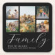 Modern Custom Photo Collage Elegant Script Family Square Paper Coaster