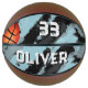Modern Custom Player Name & Number Keepsake Basketball. Watercolor background texture in blue and black colours. Personalise it with your player number and name. The design has a basketball drawing. A great personalised basketball keepsake to remember the favourite sport.