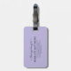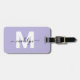 Create Your Own Stylish Modern Custom World Traveller Girly Lavender Name Monogram Luggage Tag. This chic and girly luggage tag brings a fun and vibrant touch to any travel experience, making it the perfect accessory for the world traveller or anyone with a serious case of wanderlust. The front features a bold monogram with a white initial set against a light purple background with a soft lavender or lilac hue, paired with your name in elegant black script across it. On the back, the phrase “This bag belongs to” appears in matching black script above your contact information, with your name displayed in black, ensuring your luggage is always identifiable. All colours can be customised, allowing you to create the perfect look! This monogrammed luggage tag is an ideal gift for a girly girl, sorority sister, mum, or any travel enthusiast, combining style and functionality for a personalised touch on the go. Perfect for birthdays, holidays, or just because, it’s a delightful addition to anyone’s travel essentials!