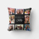 Custom photo collage throw pillow with modern script typography and space for 8 favourite family photos.