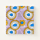 Cute colourful graphic artwork in abstract pattern, blue, purple, yellow and white.