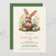 Invite friends and family to a fun Easter Egg Hunt with this adorable invitation featuring a cute bunny holding a basket filled with colourful Easter eggs, carrots, and spring flowers. Perfect for Easter celebrations, this beautifully designed card highlights a cheerful springtime aesthetic. Personalise it with your event details such as date, time, location, and RSVP information. Great for family gatherings, community brunches, or Easter parties.