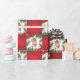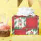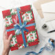 Modern Cute cat Santa Xmas Holly chequered Pattern Wrapping Paper