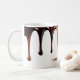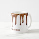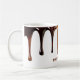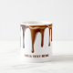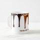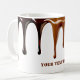 This coffee mug features a visually striking design with rich, glossy black and brown drips cascading down the upper rim, mimicking melted chocolate or coffee spilling over the edge. The bold custom in a matching brown colour sits near the base, where you can add, humour and character to the design. It’s perfect for coffee enthusiasts or anyone who enjoys unique and artistic drinkware. The text can be replaced with your own message, or you can delete it and leave it blank.
