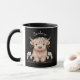 Personalised first name modern cute boho highland cow, on black background mug. A cute trendy piece of drinkware, as a birthday present, a treat yourself item or a unique christmas present.