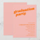 This graduation party invitation features a bold retro "graduation party" headline in orange on a bright pink background. All the event details — graduate's name, school, class year, date, location, and RSVP info — sit in the lower half in clean orange lettering. A great fit for a girl grad who wants something bold, colorful, and fun for her celebration.