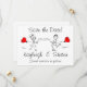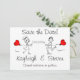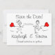This super cute modern Save the Date announcement is sure to get smiles from all of your guests! Featuring a vector drawn cartoon style couple running towards each other with red heart shaped balloons in their hands. Super easy to customise with your information!