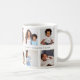 Send a beautiful personalized gift to your father (dad) that he'll cherish forever. Special personalized photo collage mug to display your own special family photos and memories. Our design features a simple 10 photo collage grid design with "Dad" designed in a beautiful handwritten black script style. Each photo is framed and centered within a simple gold-colored border. Customize with family names.