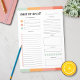 A modern daily to-do list with green, orange, and pink colours. Stay on track with your to-dos, meals, exercise, schedule and water intake.