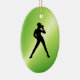 Pretty green background with a lady dancer tipping her hat. A soft shoe tap dancer.