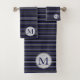 Modern Dark Blue Black Stripes Monogrammed Bath Towel Set