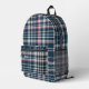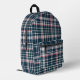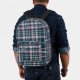 Modern Dark Blue Check Plaid Monogram Initials Printed Backpack