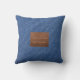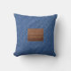 Modern Dark Blue Denim Jeans Texture Leather Patch Cushion