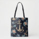 Modern Dark Blue Floral Anchor Seamless Pattern Tote Bag