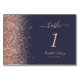 Modern Dark Blue Rose Gold Glitter Edge Wedding Table Number