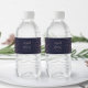 Modern Dark Blue Rose Gold Glitter Wedding Water Bottle Label