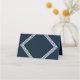 A modern dark blue tent card featuring triple white geometric borders on the outside and solid dark blue inside which you can keep or remove. It's a versatile place card that you can use for any event such as weddings, parties, baby showers, bridal showers or event meetings and conferences.