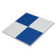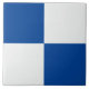 This minimalist ceramic tile features a modern chequered pattern in dark blue and white.
