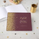 This elegant wedding guest book features a left-hand border of faux gold glitter on a dark burgundy background. Easily customise the gold-coloured text with the names of the bride and groom in whimsical handwriting calligraphy over a large ampersand. Add additional text of your choice to the front and spine.